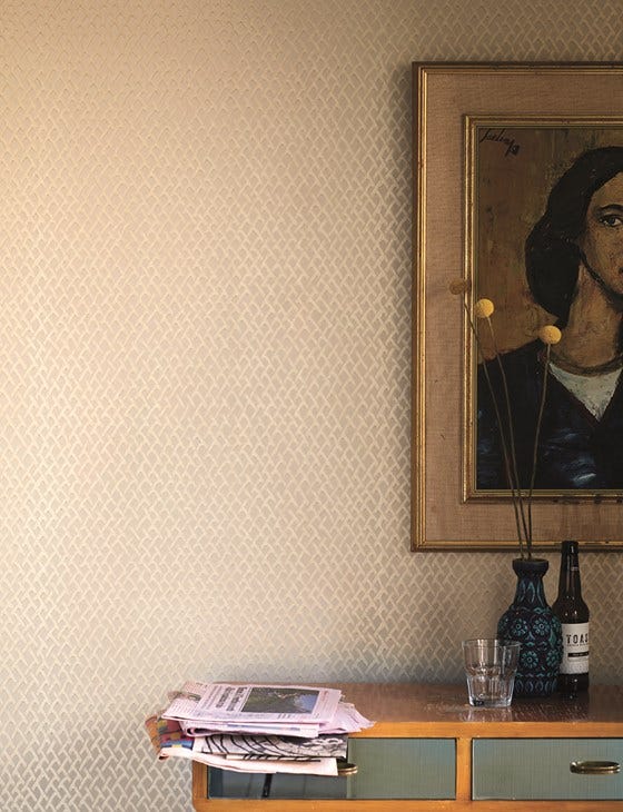 Amime', in Japanese, refers to the mesh of fishermen's nets. Mimicking their woven pattern, this geometric wallpaper is a contemporary take on a coastal theme, with the unique paint-on-paper printing method of Farrow & Ball wallpaper giving it a tactile feel.